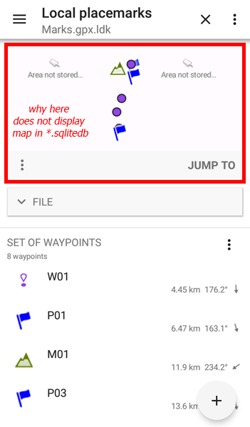 When using its offline maps (manually created in .sqlitedb), the application does not display these maps in the preview window landmarks.