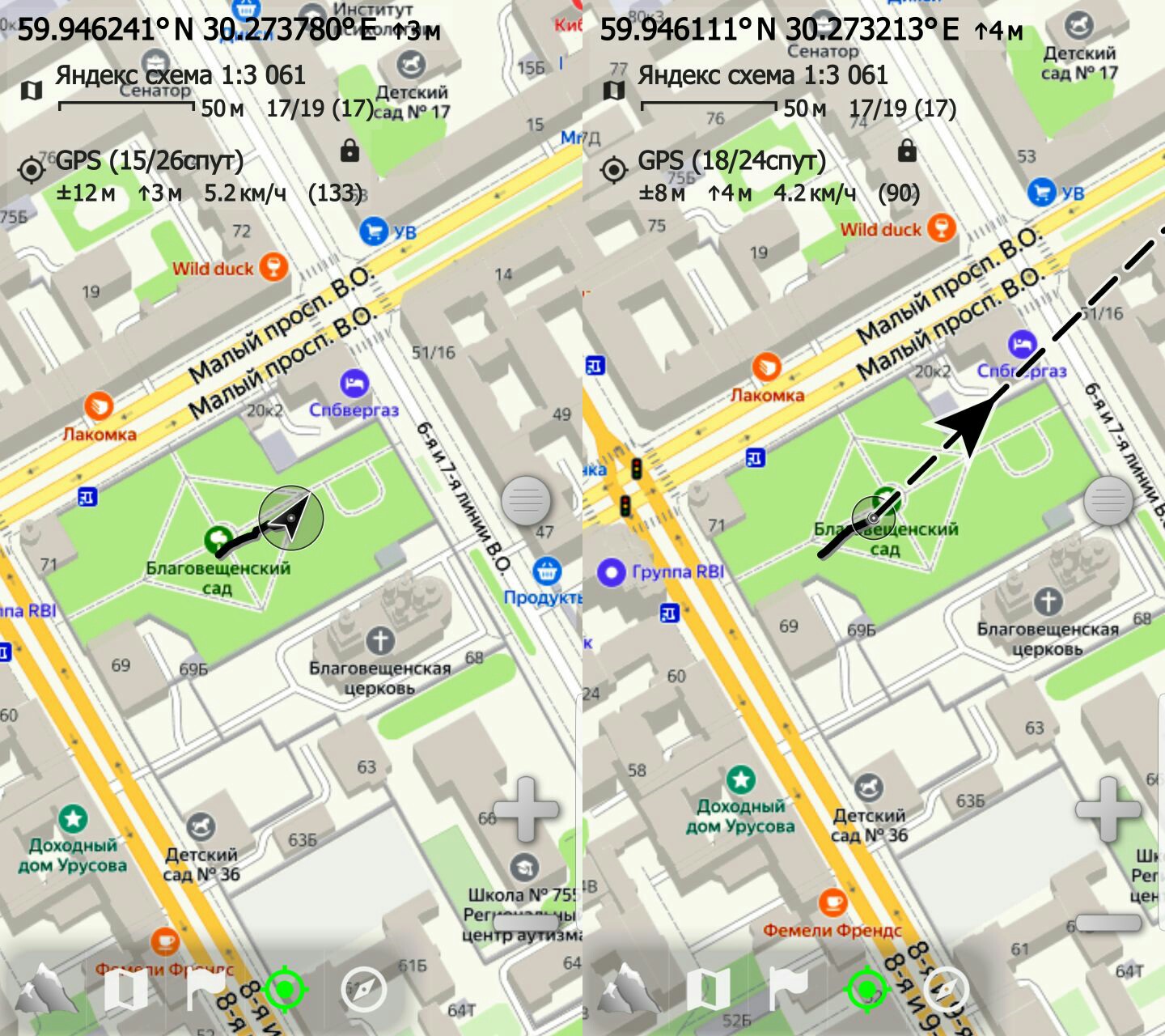 A little addition to my question. A discussion broke out on 4pda. It's not so much about the presence or absence of an arrow, but more about the fact that when you stop (there is no movement), the arrow begins to move randomly in different directions.