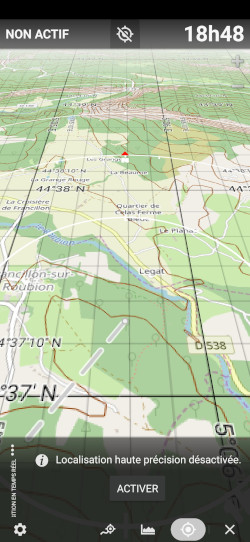 Depuis la dernière version qui permet de colorer les cartes et ainsi de pouvoir les adapter parfaitement à une utilisation nocturne (par exemple assombrie avec une dominante rouge) l'affichage des menus même grisé pique encore un peu les yeux et pourrait être amélioré selon les standards généralement utilisés pour le mode mode sombre sous Android.