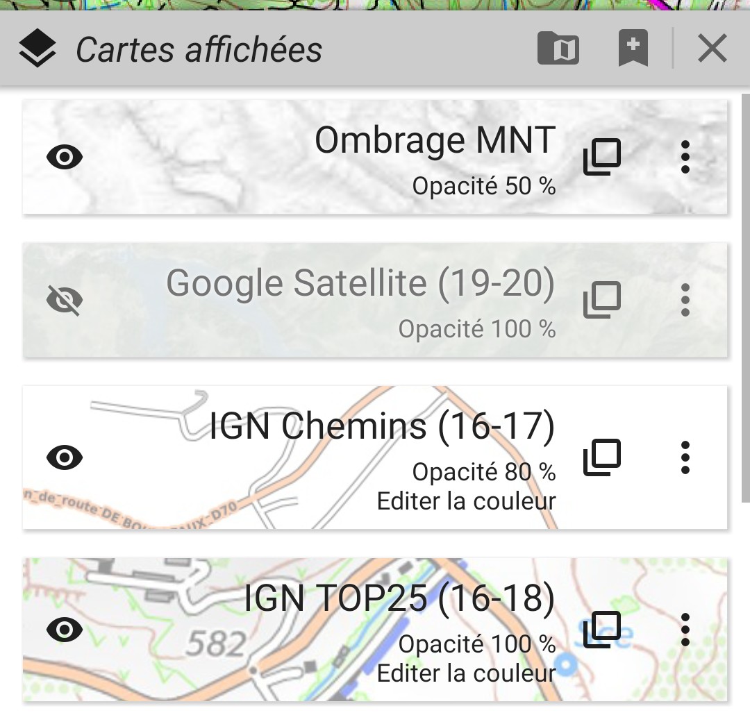 J'utilise beaucoup le menu des cartes affichées pour cocher ou décocher des cartes suivant les besoins.