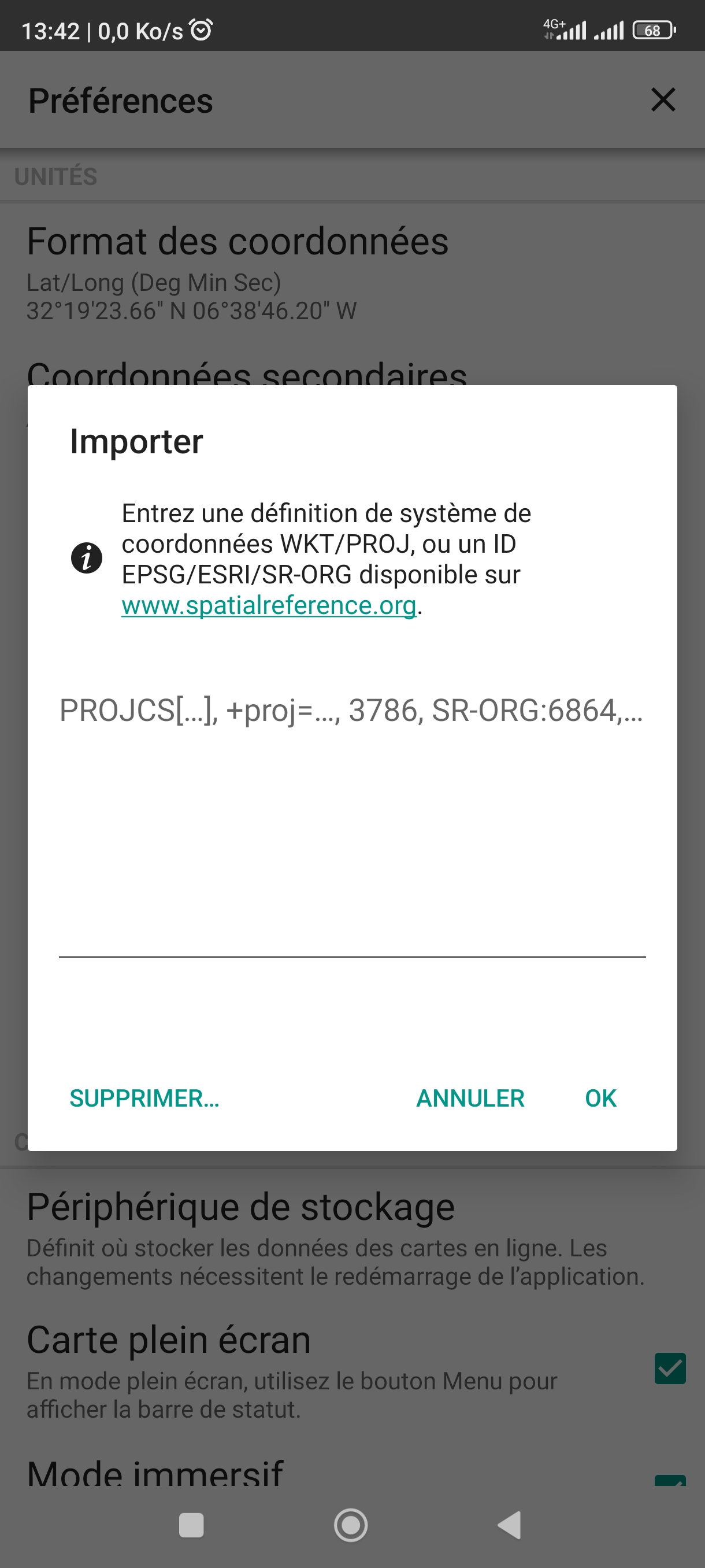 La 1ere au niveau des coordonnées secondaires impossible d'importer le fichier prj qui etait possible dans les versions précédentes, maintenant on doit écrire le contenu du prj.
