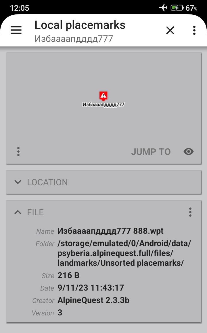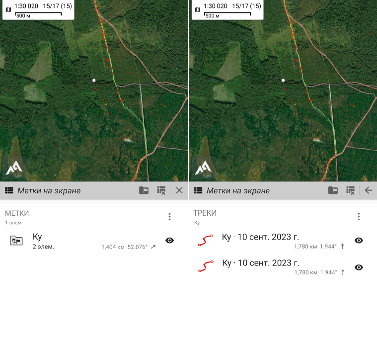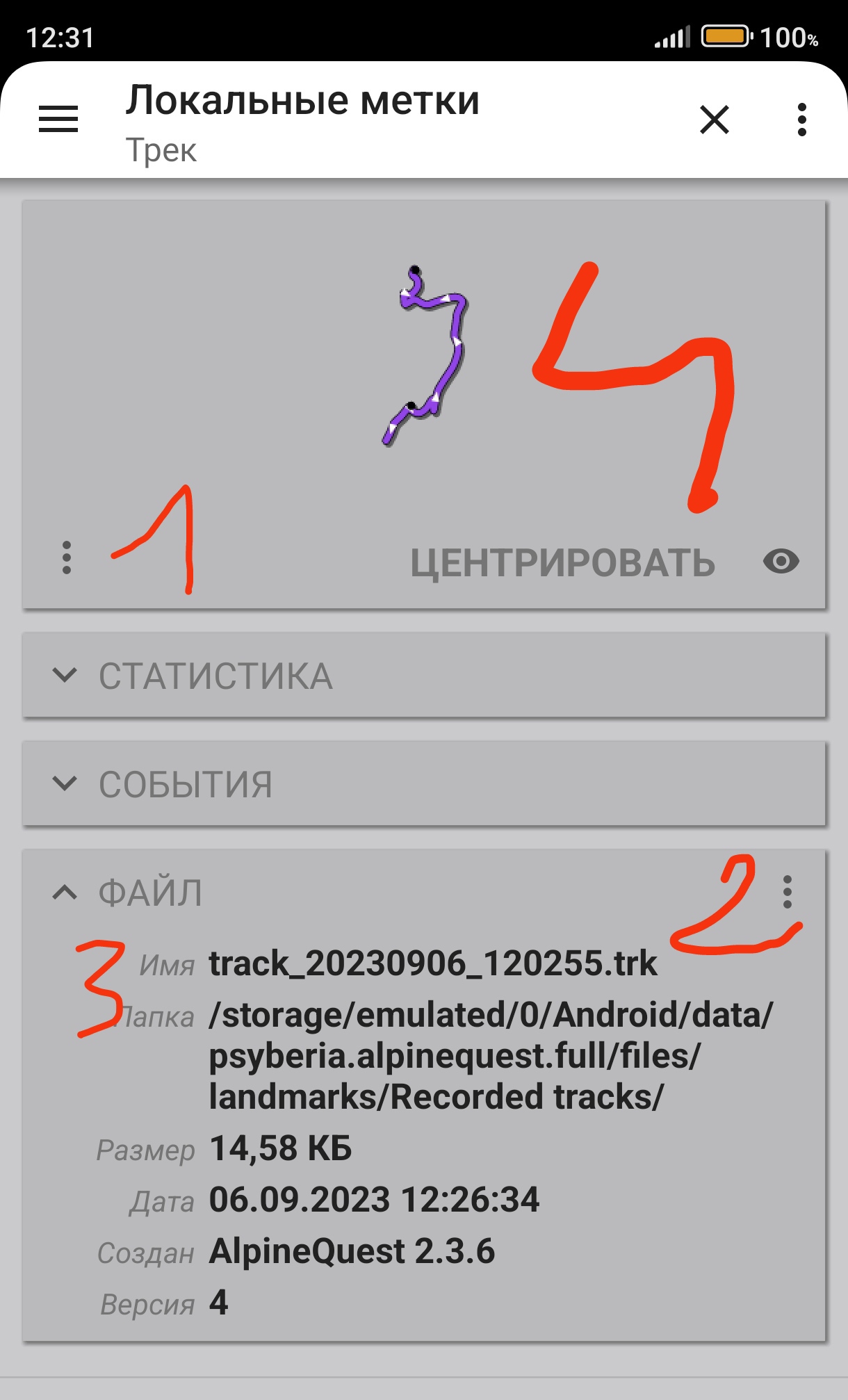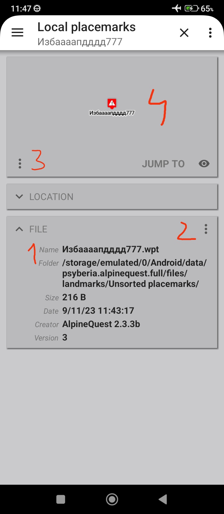 1,2,3--- это созданные мною подпапки, AlpineQuest их видит, там находятся метки (точки)