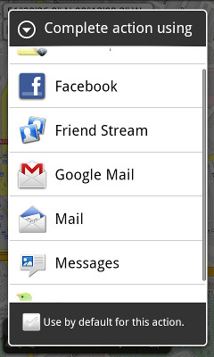 There is usually a lot of applications like SMS, EMail, GMail, Facebook, Twitter, etc. (see screen-shot).