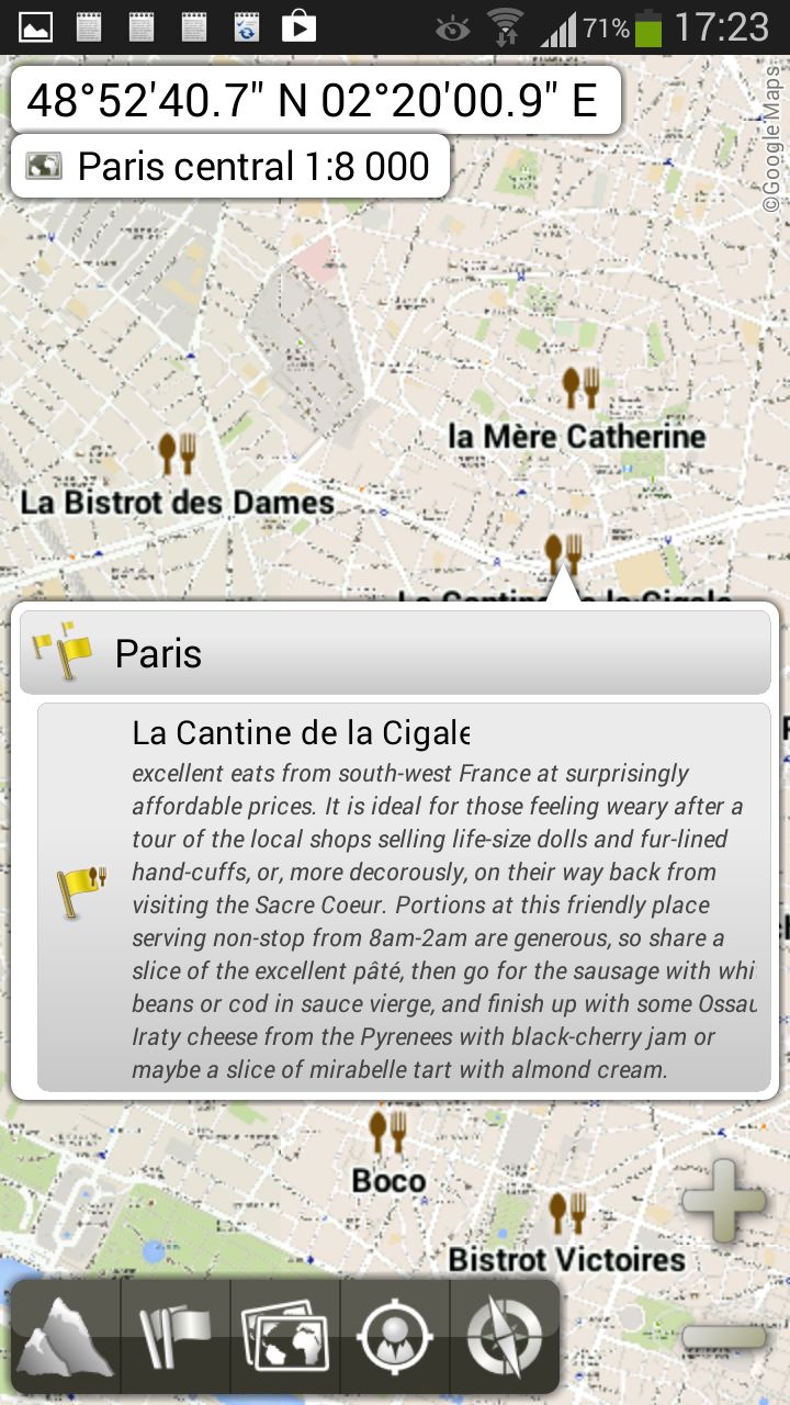 I attach a screenshot showing one of the waypoints' comments. It's perfectly readable on my desktop, which obviously shows a larger image overall, but on my 4.8 inch SGSIII, it's too small for me to read. I suppose younger eyes have no problem with it, but I'm a bit older than that! My wife also found it hard to read even with her reading glasses on.