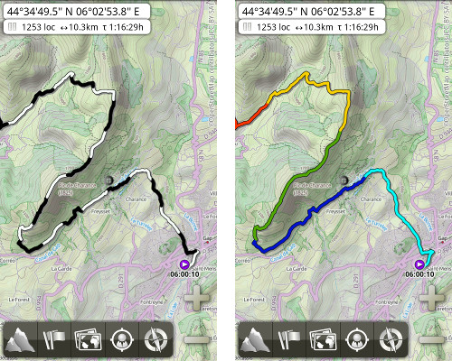 Dommage que ces deux formats ne permettent pas l'affichage des flèches ou des couleurs sur la trace.