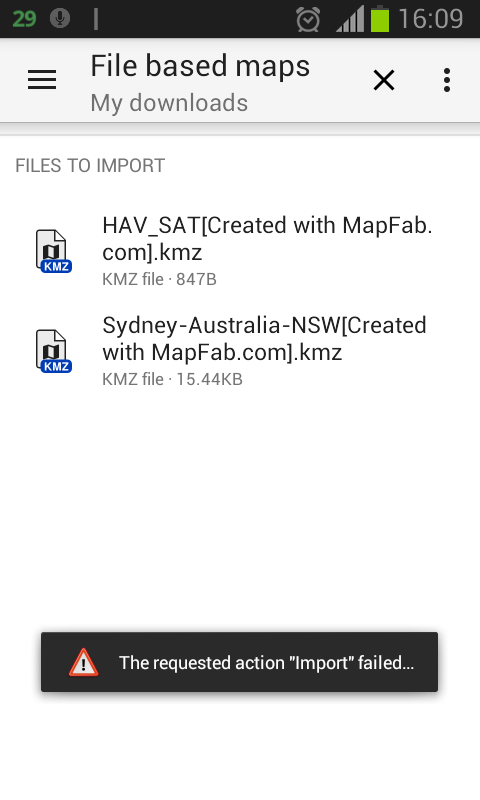 I get an error importing a kmz file in AlpineQuest , the picture show that: