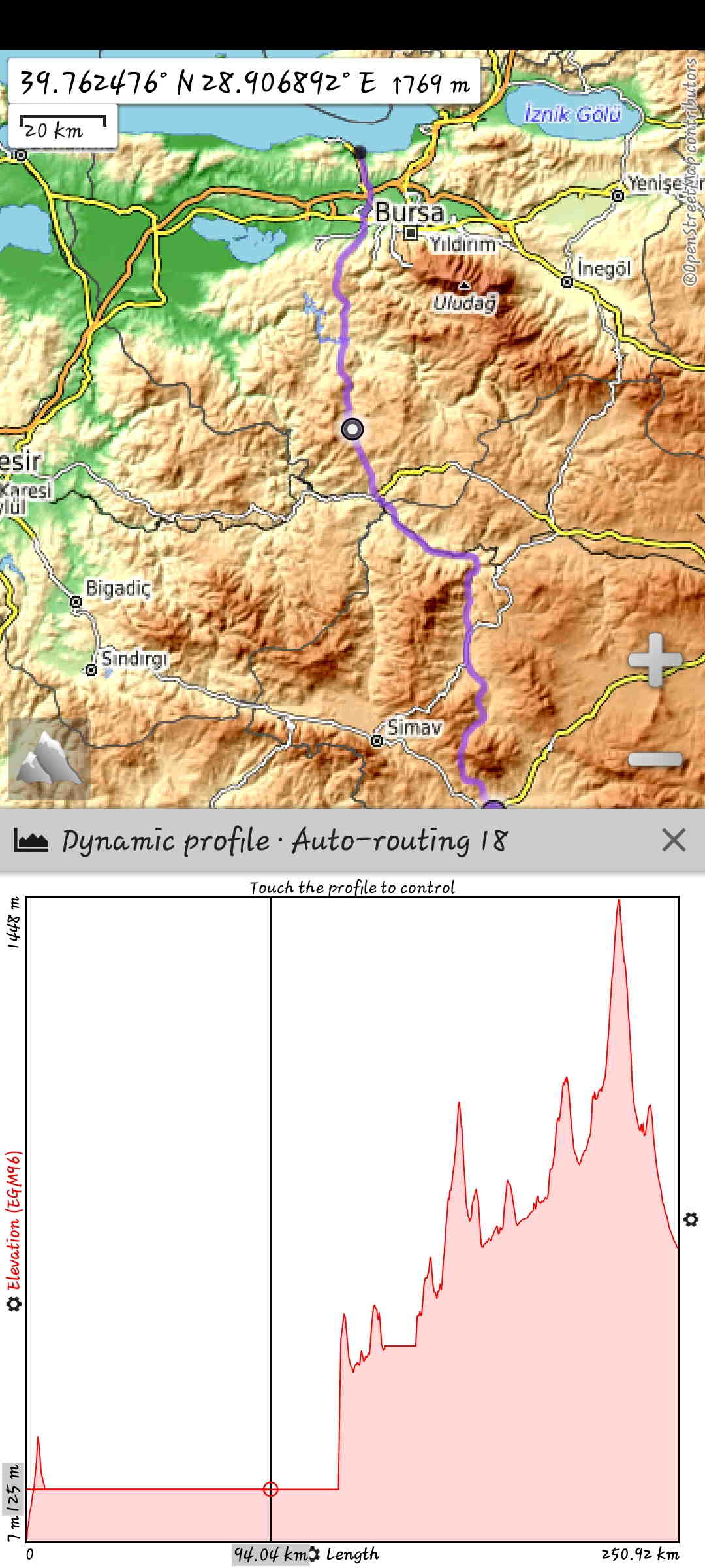However, there is a behavior you must know and that should be improved in the future: when you display the elevation profile of a long track, the application will take some time to download the elevation data of all the track.