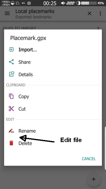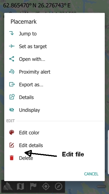 Edit file (placemark) in AlpineQuest