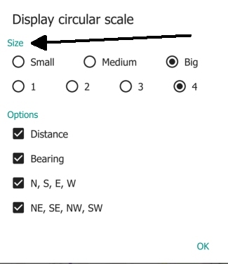 Display size factor for texts displayed above and below the screen center icon. Size Small Meduim Big Or to change the size with a horizontal slider.