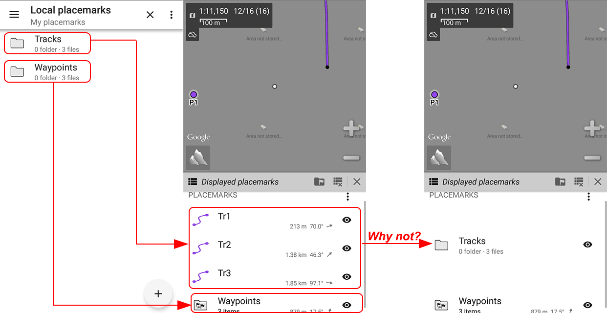 Why in the "Displayed placemarks" are the tracks in the folder displayed outside the category (without the folder)?